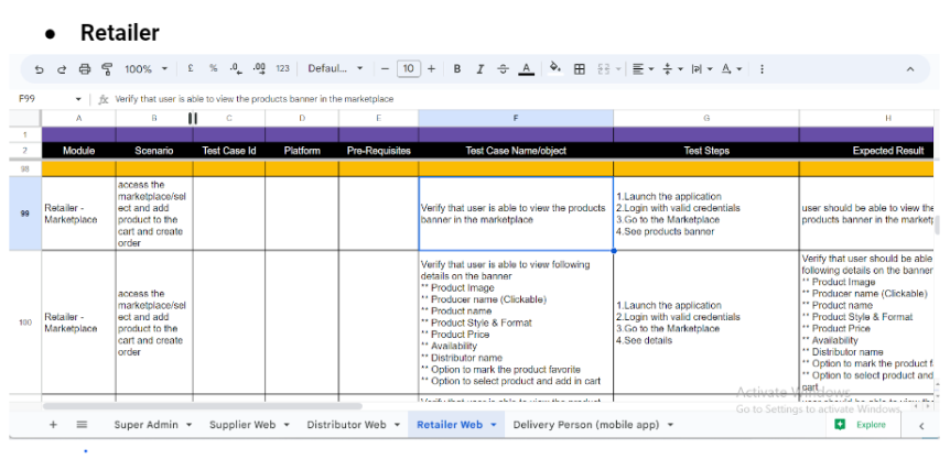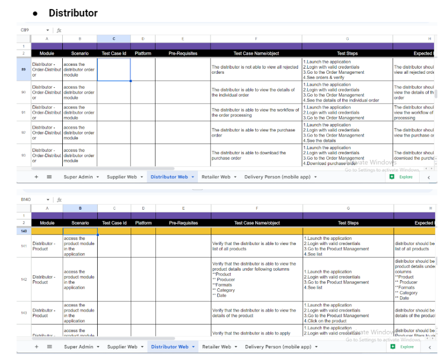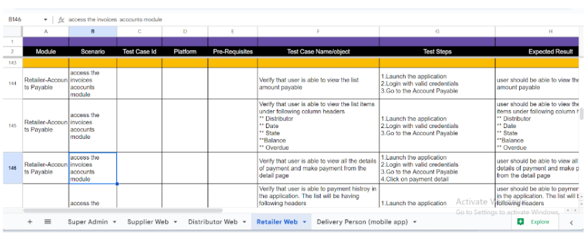We prepared test scenarios and test cases for this module; here are the sample screenshots of test cases.